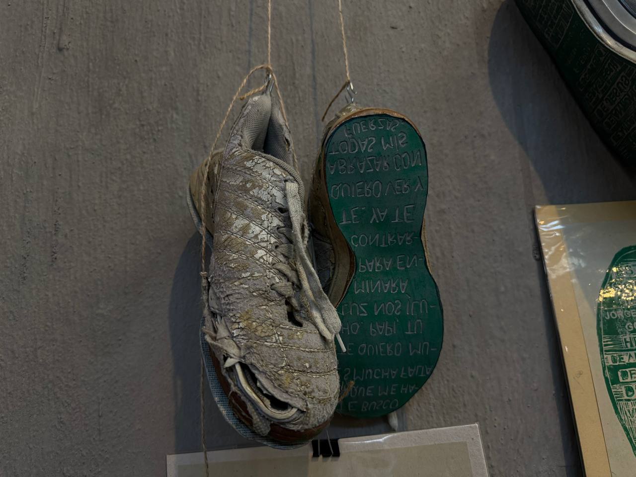 Ese eco de décadas de búsqueda se materializa en la exposición. Cada suela grabada, cada cartita escondida dentro de un zapato, enlaza el pasado con el presente. Como lo explicó Marina, integrante del colectivo: