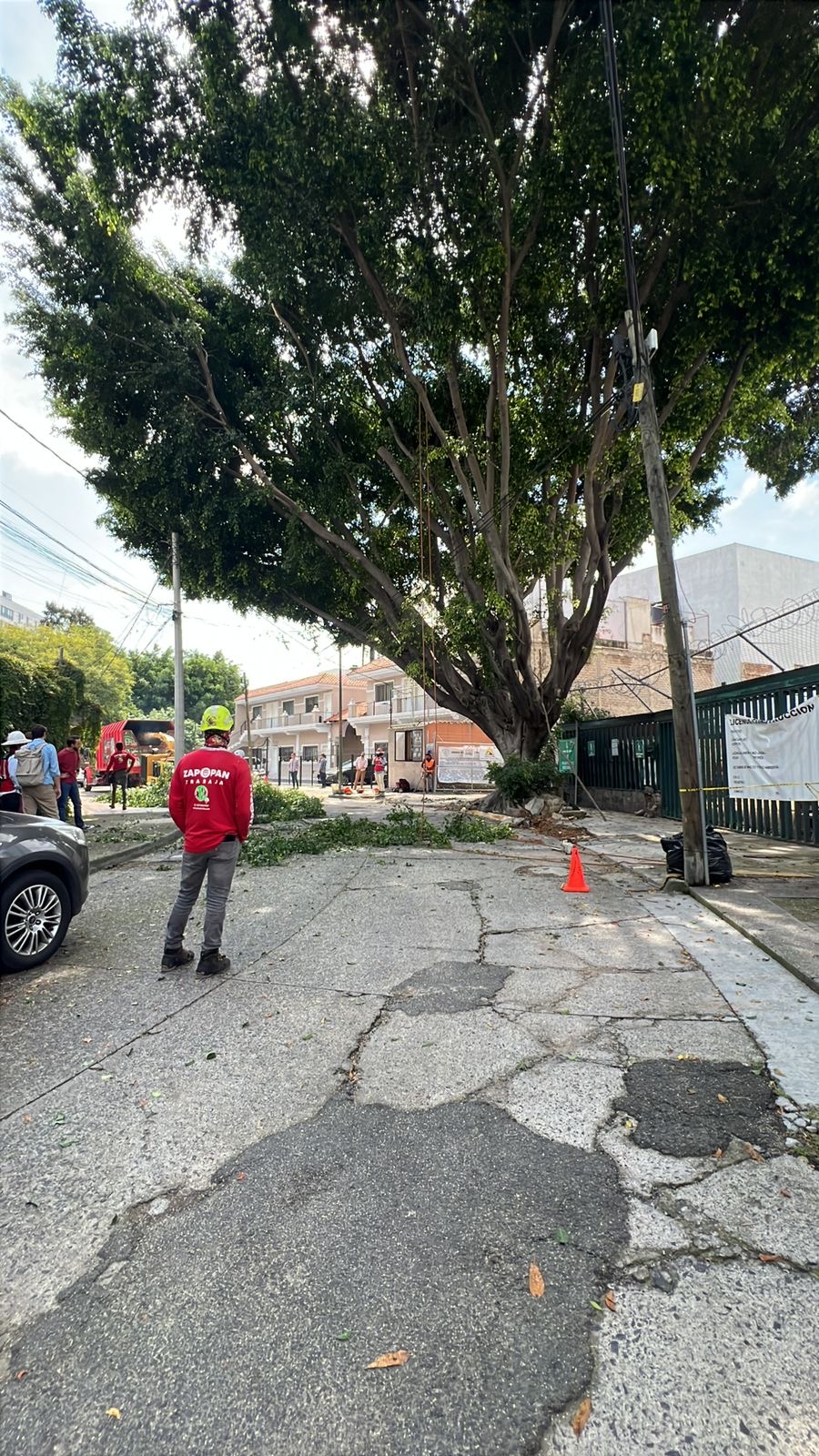 Las familias de esta colonia se enteraron de la tala del árbol el mismo día en que comenzaron los trabajos. Explicaron en entrevista con ZonaDocs que ya habían observado la remoción de otros dos ejemplares dentro del terreno, lo que generó preocupación en la colonia. El jueves de la semana pasada escucharon ruidos y al salir a la calle confirmaron que una cuadrilla ya había iniciado el corte de las primeras ramas, mientras los troncos caían sobre la vía pública, afectando incluso casas, automóviles y cables de electricidad e internet.