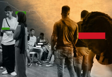 La oficina es una casa habilitada con una sala de espera y una recepción. Hay al menos 20 mujeres y hombres con fenotipo afro y tres jóvenes con aspecto musulmán por la ropa que visten. Entre ellos, una mujer joven que no parece tener más de 20 años y el pelo cubierto con una pashmina.