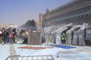 Cuando las personas -17 mil según cálculos oficiales- que participaron en la marcha llegaron al Zócalo, comenzaron las acciones contra Palacio Nacional. El grupo de jóvenes, ya preparado, ató cuerdas a las vallas y tiró de ellas hasta derribarlas. A partir de ese momento comenzó el enfrentamiento con la policía, que en un primer momento intentó hacer un escudo humano de protección del inmueble.