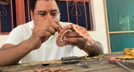 Xadani, Oax.- En el patio de su casa, en este municipio zapoteca ubicado en el Istmo de Tehuantepec, Noriel Matus Sánchez, artesano de la joyería de filigrana que usan las mujeres de esta región oaxaqueña, creó un taller para enseñar a jóvenes a continuar con este oficio artesanal.