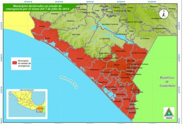 Al hacer el corte esta noche de los daños que dejó el sismo de 6.9 grados, con más de 120 réplicas, de las cuales 56 son de 3 y 4 grados en la escala de righter, García Moreno dijo que aún sigue el proceso de evaluación recorriendo comunidades y caminos de unos 30 municipios de Chiapas, ubicados en la región Itsmo-Costa, Sierra, Soconusco.