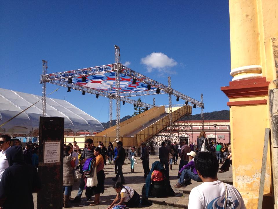 Una pista de patinaje sobre hielo, y una rampa que simula ser de nieve, ocupan la plaza principal de San Cristóbal de las Casas, ciudad que constituye el principal atractivo turístico de Chiapas.