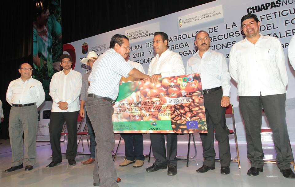 Eduardo Ramírez entregando a cafeticultores un cheque de papel. Foto: Archivo