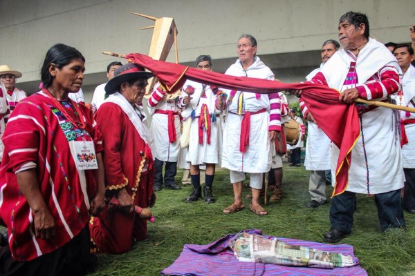 Durante el Festival de Chiapas Multicultura, que se realizó la semana pasada en Tuxtla Gutiérrez, indígenas de Oxchuc realizaron un rito tradicional. Foto: Fernando Vásquez/ Chiapas PARALELO.