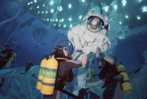 Una vez que son seleccionados los astronautas, llevan un entrenamiento mínimo de 3 años antes de ir al espacio, las condiciones y simulaciones se realizan tal cual se ejecutan en el espacio, todo debe ser exacto y preciso, no se puede tolerar ningún error, eso podría poner en riesgo a la misión y a la tripulación. Los astronautas realizan las misiones simuladas dentro de unas piscinas de enormes dimensiones, se equipan con todos los instrumentos, guantes, botas, cascos, radio-comunicador, oxígeno, etc. Imagínese, usted siendo un astronauta en capacitación y su próxima misión será arreglar un giroscopio del Telescopio Espacial Hubble; cabe mencionar que el telescopio tiene las dimensiones de un autobús, en los laboratorios de la NASA en la Tierra, existe una réplica exacta del Telescopio Espacial Hubble, y usted practicará la reparación del giroscopio sumergida en esa alberca, los tornillos y engranes del giroscopio pueden ser pequeñas, y usted manipulará los desarmadores y tornillos mientras tiene puesto unos guantes más gruesos que los de un portero de futbol, ¿será un trabajo fácil?, pero estando en la tierra, dentro de esa enorme piscina, no es tan fácil distraerse, ahora imagínese estar ya flotando en el espacio, sujetado con un arnés de seguridad a las paredes del Hubble y de fondo tiene, en un lado el oscuro universo y por el otro, el azul del mar de nuestro planeta Tierra como fondo, dando vuelta a la tierra en aproximadamente 93 minutos, viendo amaneceres y/o atardeceres mientras usted trabaja en ese módulo. ¿Sería fácil concentrarse con tan bella panorámica?.